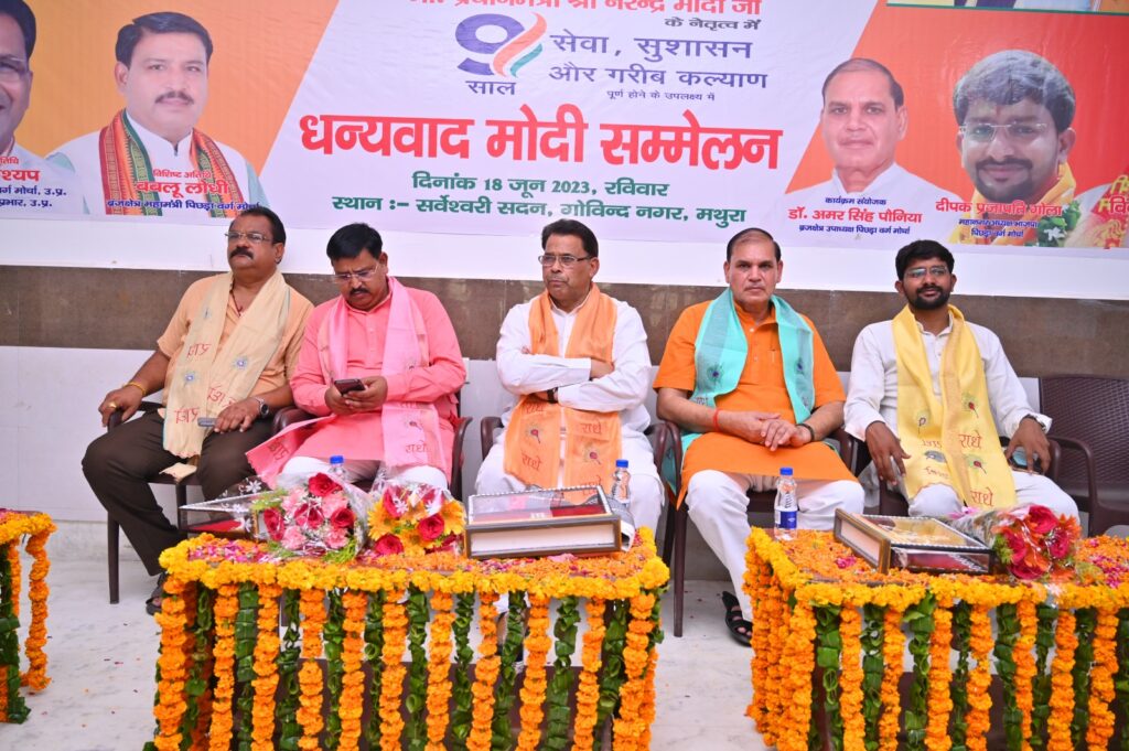 मथुरा। भारतीय जनता पार्टी पिछड़ा वर्ग मोर्चा मथुरा महानगर द्वारा ‘धन्यवाद मोदी’ सम्मेलन का आयोजन सर्वेश्वरी सदन गोविंद नगर में किया गया।
