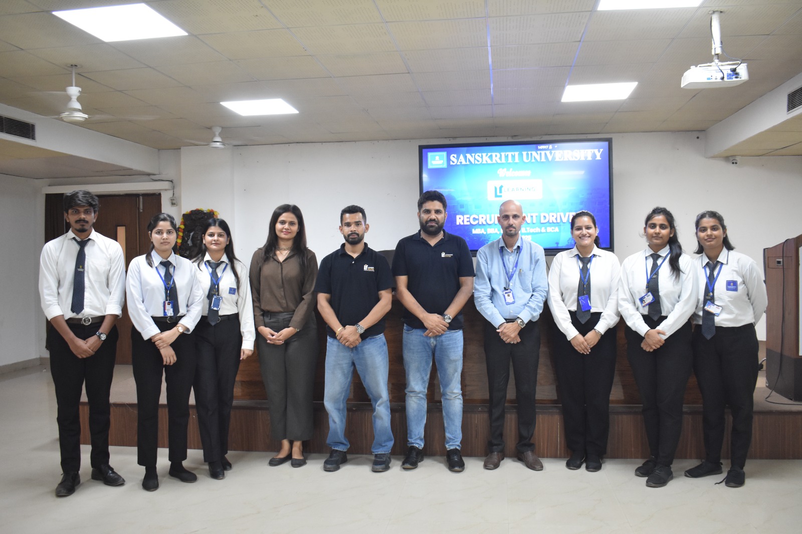 चित्र परिचयः एड-टेक कंपनी लर्निंग रूट द्वारा चयनित संस्कृति विवि के विद्यार्थी कंपनी और संस्कृति विवि के ट्रेनिंग एंड प्लेसमेंट के अधिकारियों के साथ ।