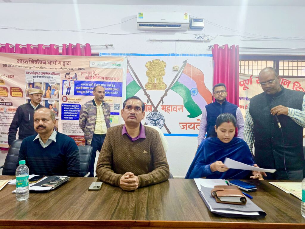 मथुरा। जिलाधिकारी चंद्र प्रकाश सिंह की अध्यक्षता में विशेष प्रगाढ़ पुनरीक्षण अभियान -2026 के संबंध में तहसील महावन के सभागार में बैठक हुई सम्पन्न। बैठक में अपर जिलाधिकारी न्यायिक सुरेंद्र कुमार, उप जिलाधिकारी महावन कंचन, तहसीलदार महावन, महावन क्षेत्र के समस्त बी0एल0ओ0, सुपरवाइजर सहित अन्य अधिकारी व कर्मचारी मौजूद रहे।