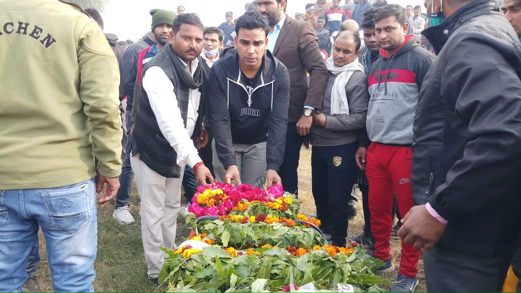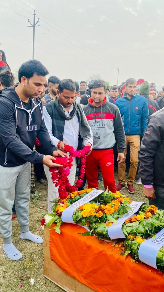 फरह। फरीद कोट (पंजाब) में हार्ट अटैक से मृत हुए सेना के जवान गजराज सिंह उर्फ बंटी का शव मंगलवार सुबह उनके पैतृक गांव रैपुराजाट में पहुंचा। उनकी शव यात्रा में गांव और क्षेत्र के हजारों लोगों सहित प्रशासनिक अधिकारियों ने भी भाग लिया और नम आखों से उनको श्रृद्धांजली दी।