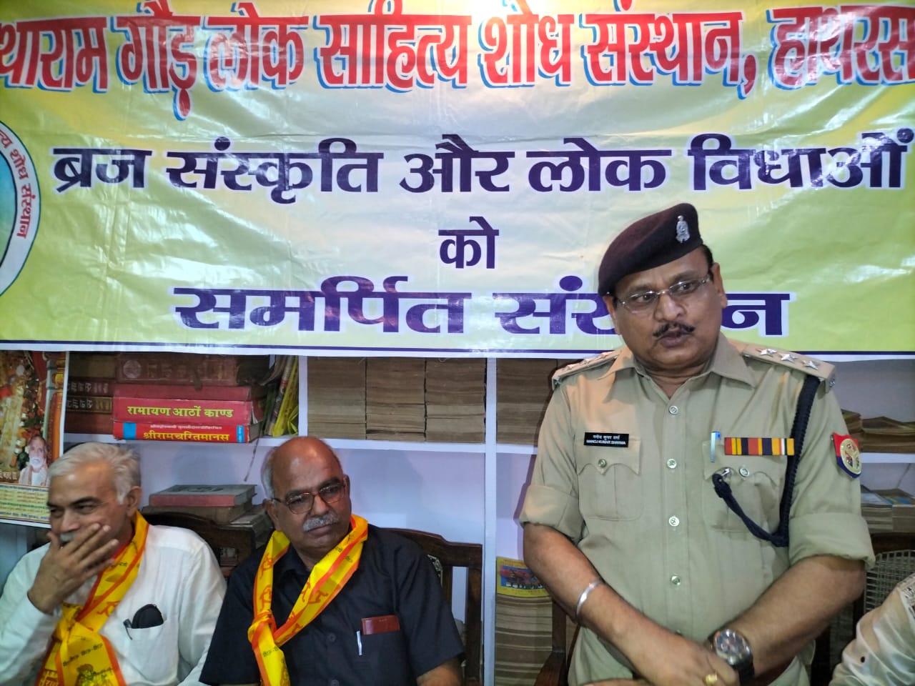 इस अवसर पर विशेष रूप से आमन्त्रित हाथरस पुलिस के क्षेत्राधिकारी श्री मनोज कुमार शर्मा जी को नगर के गणमान्य विशिष्टजनों के कर कमलों द्वारा लोकनाट्य भगत-सांगीत व लोकसंस्कृति के प्रति अनुराग व इसके उन्नयन हेतु योगदान के लिये ‘प.नथाराम गौड़ स्मृति सम्मान-2022’ से अलंकृत किया गया।
