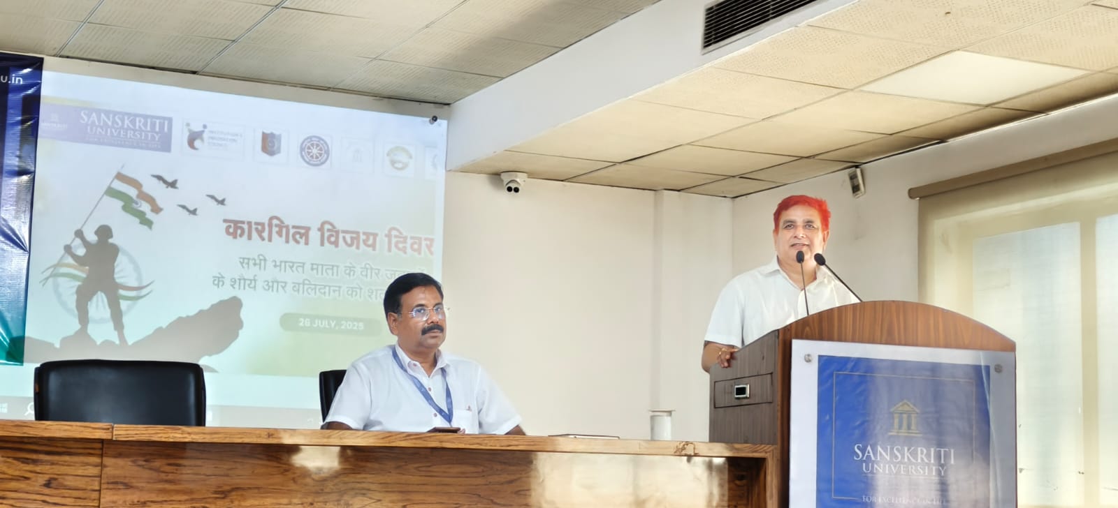 संस्कृति छात्र कल्याण विभाग के निदेशक डा. धर्मेंद्र सिंह तौमर ने बताया कि पाकिस्तान अपने सैनिकों और अर्ध-सैनिक बलों को छिपाकर नियंत्रण रेखा के पार भेजने लगा उसने इस घुसपैठ का नाम “ऑपरेशन बद्र” रखा था। इसका मुख्य उद्देश्य कश्मीर और लद्दाख के बीच की कड़ी को तोड़ना और भारतीय सेना को सियाचिन ग्लेशियर से हटाना था। पाकिस्तान यह भी मानता है कि इस क्षेत्र में किसी भी प्रकार के तनाव से कश्मीर मुद्दे को अंतरराष्ट्रीय मुद्दा बनाने में मदद मिलेगी। प्रारम्भ में इसे घुसपैठ मान लिया था और दावा किया गया कि इन्हें कुछ ही दिनों में बाहर कर दिया जाएगा लेकिन नियंत्रण रेखा में खोज के बाद इन घुसपैठियों के नियोजित रणनीति के बारे मे पता चला जिससे भारतीय सेना को एहसास हो गया कि हमले की योजना बहुत बड़े पैमाने पर की गयी है। इसके बाद भारत सरकार ने ऑपरेशन विजय नाम से 2,00,000 सैनिकों को कारगिल क्षेत्र मे भेजा। यह युद्ध आधिकारिक रूप से 26 जुलाई 1999 को समाप्त हुआ। इस युद्ध के दौरान 527 सैनिकों ने अपने जीवन का बलिदान दिया और 1400 के करीब घायल हुए थे। कार्यक्रम के दौरान संस्कृति विवि के शिक्षक,कर्मचारी और विद्यार्थी बड़ी संख्या में उपस्थित हुए और उन्होंने नम आखों से वीरगति को प्राप्त हुए भारतीय सैनिकों को श्रद्धांजलि अर्पित कीं।