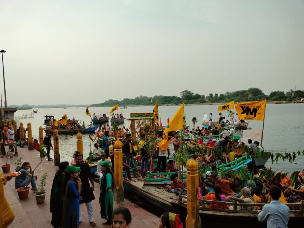 सोमवार को एक अभिनव परंपरा की शुरुआत तब हुई, जब पहली बार यमुना मिशन द्वारा जगन्नाथ रथ नौका यात्रा का आयोजन किया गया। करीब दर्जनभर नावों को फूलमालाओं-ध्वज पताकाओं से सजाया गया। एक नाव में भगवान जगन्नाथ, यमुनाजी आदि के विग्रह सजाए गए थे। सबसे पहले श्रीविग्रहों का पूजन अर्चन किया गया और नौका यात्रा का शुभारंभ किया गया। इसी नाव पर यमुना मिशन के संस्थापक प्रदीप बंसल अन्य साधु संतों के साथ बैठे हुए थे। इसके अलावा अन्य नावों पर संस्था कार्यकर्ता और जन सामान्य के लोग थे।