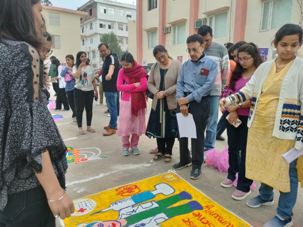 रंगोली प्रतियोगिता में स्वास्थ्य-विषयक रंगोली बनाकर छात्राओं ने किया कला का प्रदर्शन