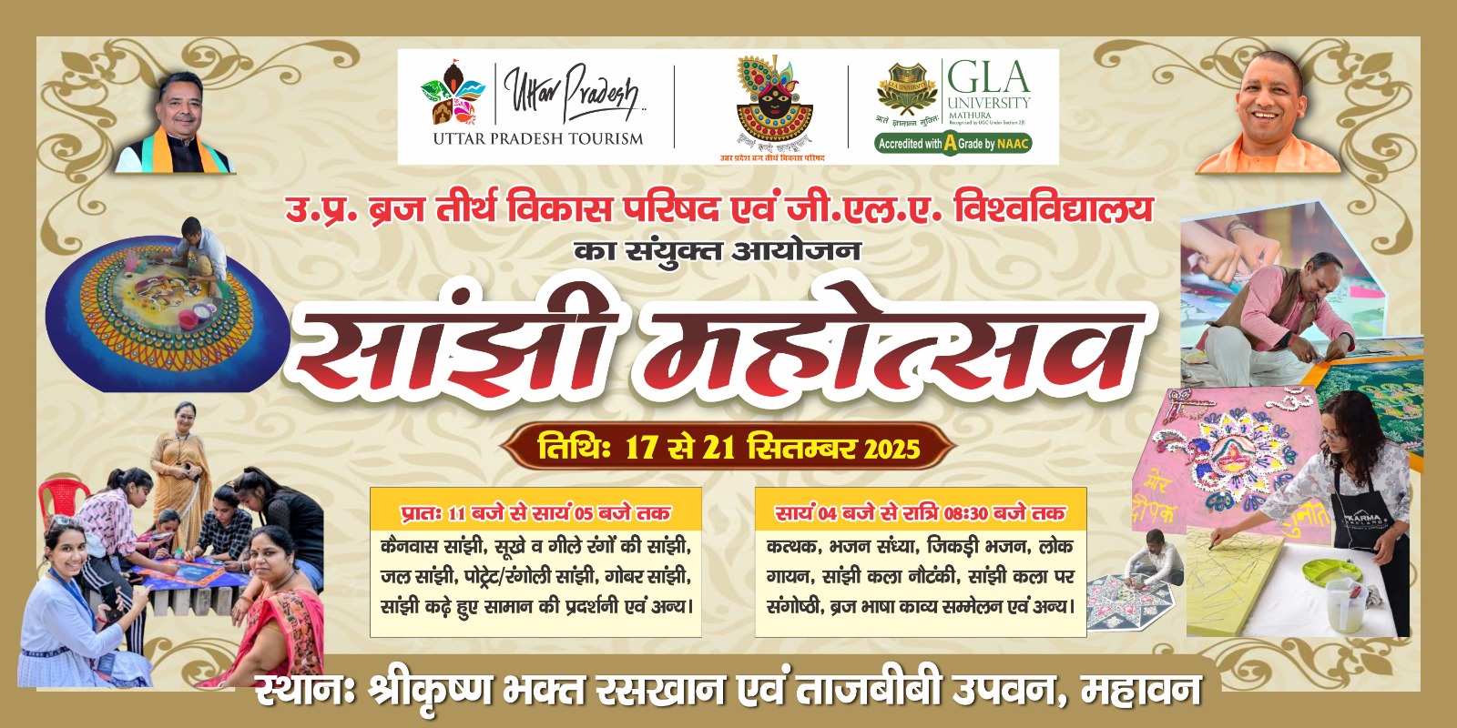 उत्तर प्रदेश ब्रज तीर्थ विकास परिषद के बैनरतले 17 सितंबर से होगा सांझी महोत्सव का आयोजन