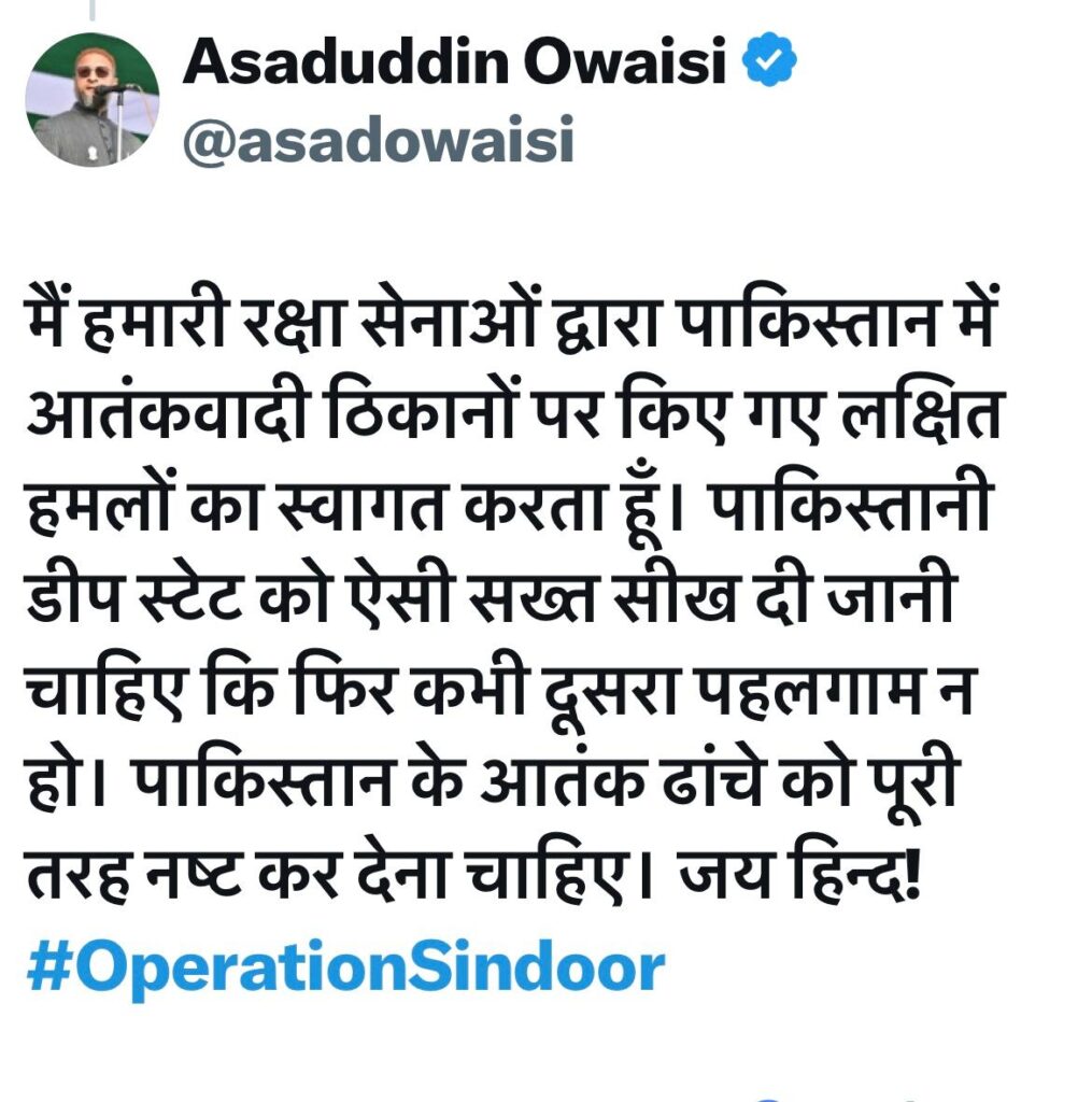 मथुरा । पहलगाम के आतंकी हमले का मुंहतोड़ जवाब देते हुए भारतीय सेना ने बुधवार को पाकिस्तान और पीओके में 9 जगहों (बहावलपुर (02), मुरीदके, मुजफ्फराबाद, कोटली, गुलपुर, भिंबर, चक अमरू, सियालकोट) पर एयर स्ट्राइक की. है । हमले में कई लोगों की मौत हुई है।