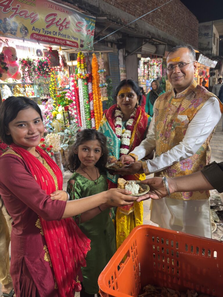 मथुरा। महाशिव रात्रि पर रविवार को रंगेश्वर महादेव एवं रंगेश्वरी काली मां का भव्य श्रृंगार किया गया। रंगेश्वर मंदिर परिसर में शाम को कुटू आटे की पकौड़ी, नारियल की चटनी का भोग लगाने के बाद प्रसाद वितरण दर्शनों को आने वाले श्रद्धालुओं को किया गया। शिव भक्त बबलू चौधरी, प्रियंका चौधरी, मां के दास अशोक गुप्ता, बांके बिहारी, कुंज बिहारी, अशोक गुप्ता मां के दास आदि भक्तों ने प्रसाद वितरण किया। श्रद्धालुओं को रोक-रोक कर प्रसाद दिया जा रहा था।