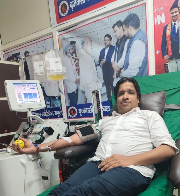 मथुरा। रक्तदाता फाउंडेशन संस्था ने एक बार फिर सराहनीय काम किया। प्राइवेट हॉस्पिटल में भर्ती मरीज कृष्णा के लिए मयूर और आलोक ने बृजवासी चेरिटेबल ब्लड बैंक में रक्तदान किया वही दूसरे केस में संस्था के संस्थापक अमित गोयल ने रात 12 बजे राया से जा कर रामकृष्ण मिशन हॉस्पिटल में भर्ती मरीज धर्मेंद्र के लिए प्लेटलेट्स डोनेशन की। अमित गोयल ने बताया रक्षाबंधन की पूर्व संध्या पर डोनेशन किया। परिजनों ने संस्था का आभार व्यक्त किया एवं रक्तदान करने का संकल्प लिया।