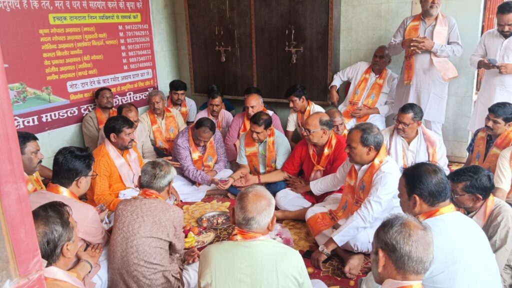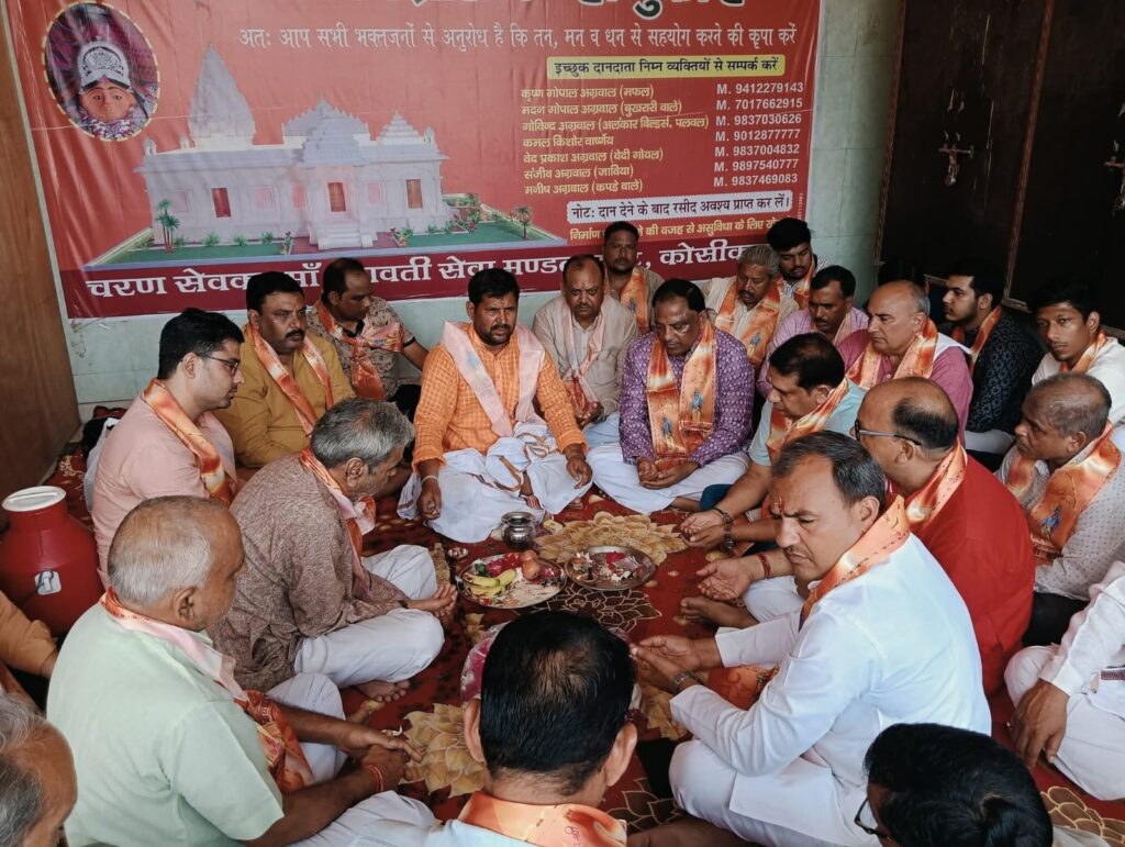 कोसीकला । श्री रामलीला संस्थान कोसी कलाँ के तत्वाधान में 27 जुलाई 2025 के रामलीला मेले के शुभारंभ हेतु राज राजेश्वरी माँ भगवती पर दुग्धाभिषेक का कार्यक्रम संपन्न हुआ। इस कार्यक्रम में श्री रामलीला अध्यक्ष अजय मंगला जी, मंत्री अन्नू वैध, समन्वयक हरेंद्र ठाकुर जी, संयोजक अजय गोयंका जी, मेला आचार्य मोरमुकुट शास्त्री जी, रामलीला परोहित सत्यनारायण मास्टर जी कोसी कला के प्रमुख समाज सेवी कमल किशोर भाजपा जिला अध्यक्ष निर्भय पांडे, विवेक अग्रवाल, नगर पालिका अध्यक्ष श्री धर्मवीर अग्रवाल, होती चाचा जी, संजीव जाबिया, देशबंधु अग्रवाल, कन्हैया लाल गोयल, जय प्रकाश, ललित कुमार एडवोकेट, भगवत प्रसाद रूहेला, हरिओम गुप्ता, आशीष ठाकुर, सचिन शर्मा अमित चौधरी, सोनू पटवारी, मनीष गुड़ वाले, शम्बू चौधरी, जय प्रकाश शर्मा, कृष्ण गोपाल शर्मा,आदि लोग मौजूद रहे एवं समस्त रामलीला संस्थान पदाधिकारी एवं श्रृंगारी मौजूद रहे।