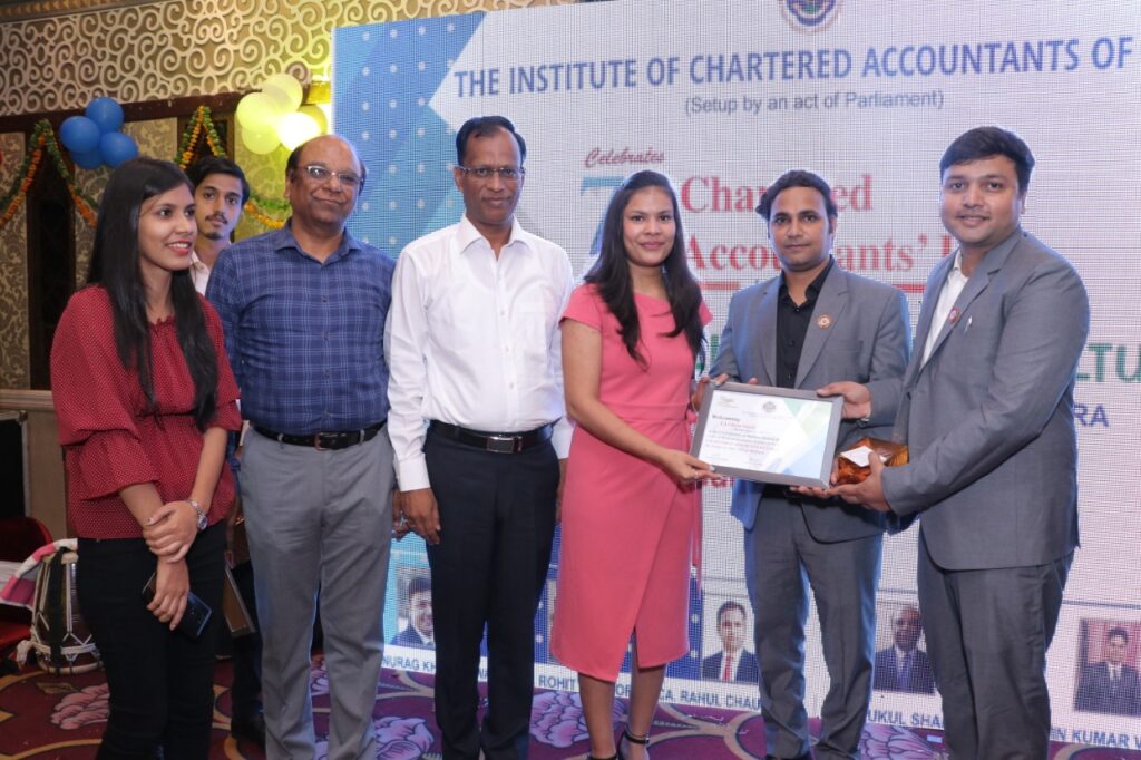 महान सीए दिवस के अवसर पर सांस्कृतिक कार्यक्रमों, देशभक्ति गीत और आगरा से आए कलाकारों एवं मनोज शर्मा बैंड द्वारा समां बांधा गया। विगत 25 वर्षों से कार्यरत सीए सुनील अग्रवाल, सीए प्रवीण जैन, 75 वर्ष की उम्र पार कर चुके सीए ब्रजभूषण अग्रवाल, पूर्व चेयरमैन जितेंद्र चतुर्वेदी और संजीव अग्रवाल का पटका पहनाकर एवम स्मृति चिन्ह प्रदान कर अभिनंदन शाखा पदाधिकारियों द्वारा किया गया। स्वागत के बीच कार्यक्रम प्रस्तुति होती रहीं। वरिष्ठ सीए कुलदीप अरोरा ने नवीन एवं युवा सीए को सत्य निष्ठा एवं मेहनत से कार्य करने की सलाह दी।