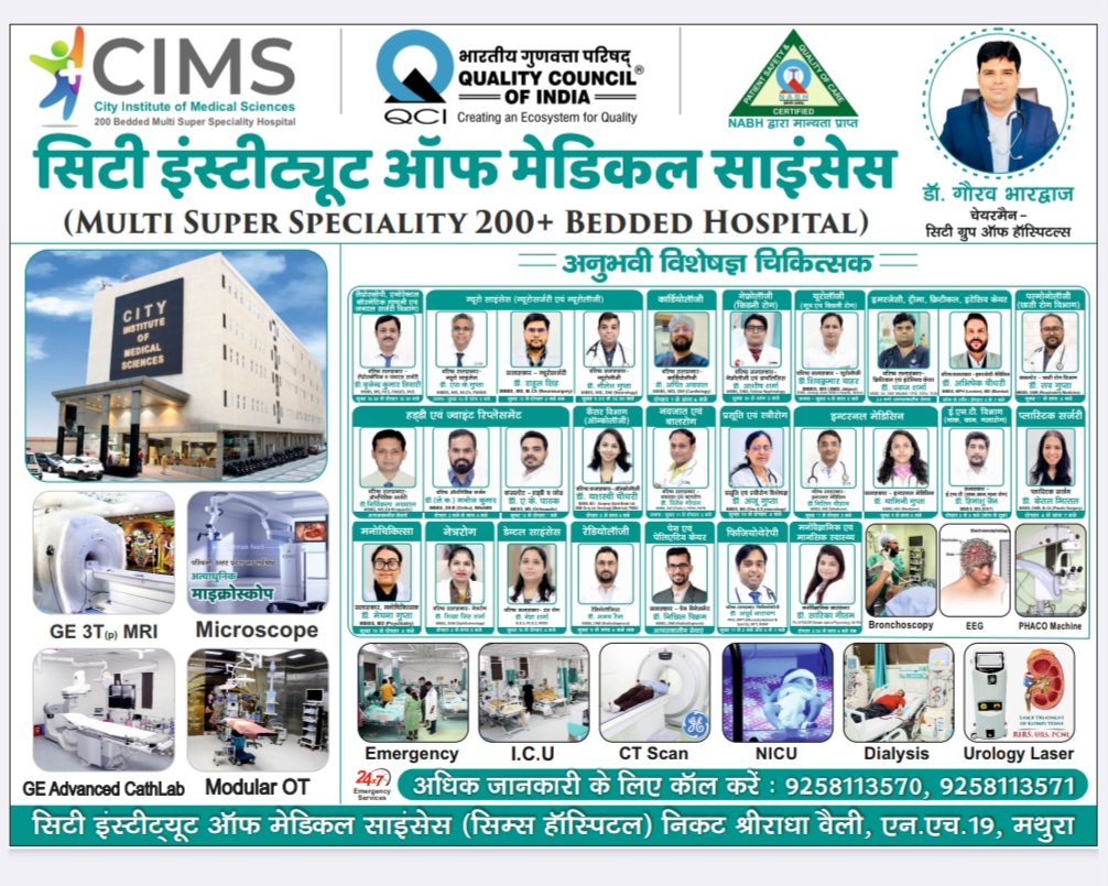 इस अवसर पर सिम्स हॉस्पिटल के चेयरमैन डॉ. गौरव भारद्वाज ने कहा कि सिम्स हॉस्पिटल और श्री लाड़ली जी चिकित्सालय ट्रस्ट, भारद्वाज सेवा सदन, बरसाना में डॉ. मंशा देवी के सहयोग से एक नि:शुल्क स्वास्थ्य शिविर का आयोजन किया गया। आये हुए लोगों ने वरिष्ठ यूरोलॉजिस्ट डॉ. शिवकुमार चाहर से मूत्ररोग, प्रोस्टेट एवं किडनी की समस्या हेतु नि:शुल्क परामर्श लिया और फिजिशियन डॉ. शुभम भारद्वाज ने मौसमी बीमारियों और सामान्य रोग से पीड़ित मरीजों को नि:शुल्क परामर्श देकर दवा वितरित की। हेल्थ कैम्प में आये हुए लोगों ने सिम्स हॉस्पिटल के सभी चिकित्सकों का आभार व्यक्त किया। इस अवसर पर डॉ. गोविंद राम शर्मा, डॉ. मंशा देवी, स्वाति शर्मा, जमुना प्रसाद, रविंदर जी, चेतन (टेक्नीशियन), भरत शर्मा, बृजेश शर्मा, रितेश शर्मा, के.पी. सिंह, विनय प्रकाश, दिनेश, चंचल, भानु, रिषी, प्रीति आदि उपस्थित रहे।