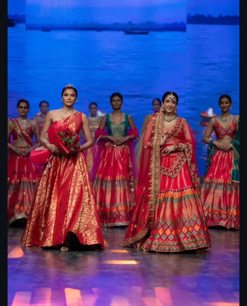 मथुरा। संस्कृति विश्वविद्यालय के स्कूल ऑफ फैशन डिजाइनिंग के विद्यार्थियों ने बनारस के होटल ताज गंगे में हुए लेक्सो शो में अपने शानदार ‘ब्राइडल वीयर’ परिधानों की एक लंबी श्रंखला प्रस्तुत कर फैशन शो में धूम मचा दी।