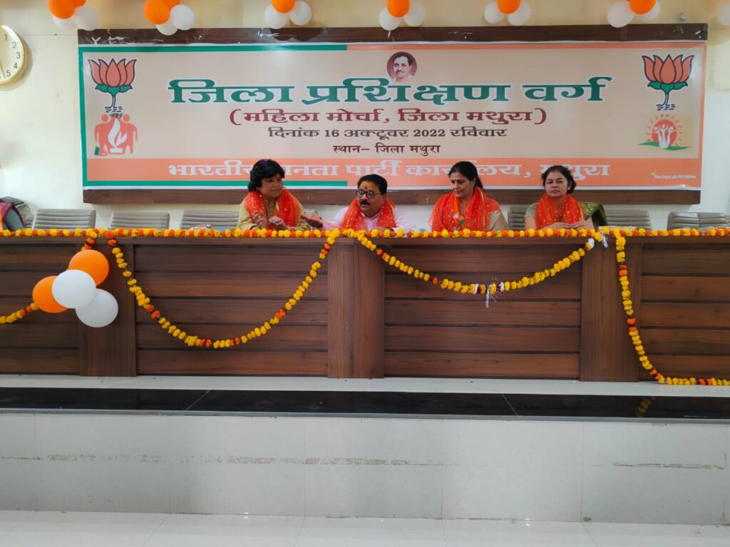 महिला मोर्चा जिला अध्यक्ष मुदिता शर्मा ने बताया कि जिला प्रशिक्षण वर्ग पदाधिकारियों को पार्टी की रीति नीति के बारे में जानकारी देना साथ ही साथ महिलाओं को राजनीतिक एवं सामाजिक चुनौतियों से कैसे उभरकर अपना स्थान प्राप्त करना है विस्तृत रूप से समझाया गया ।